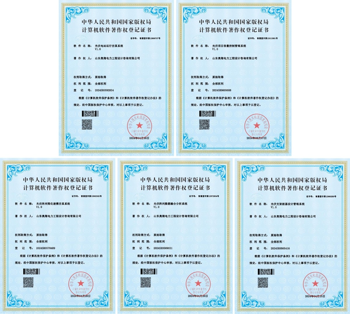 喜訊丨奧翔公司連獲5項軟件著作權證書