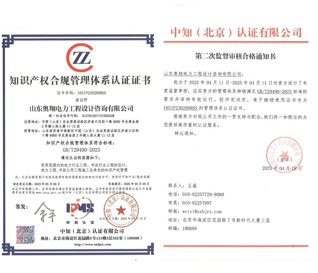山東奧翔電力工程設計咨詢有限公司再獲國家級認證